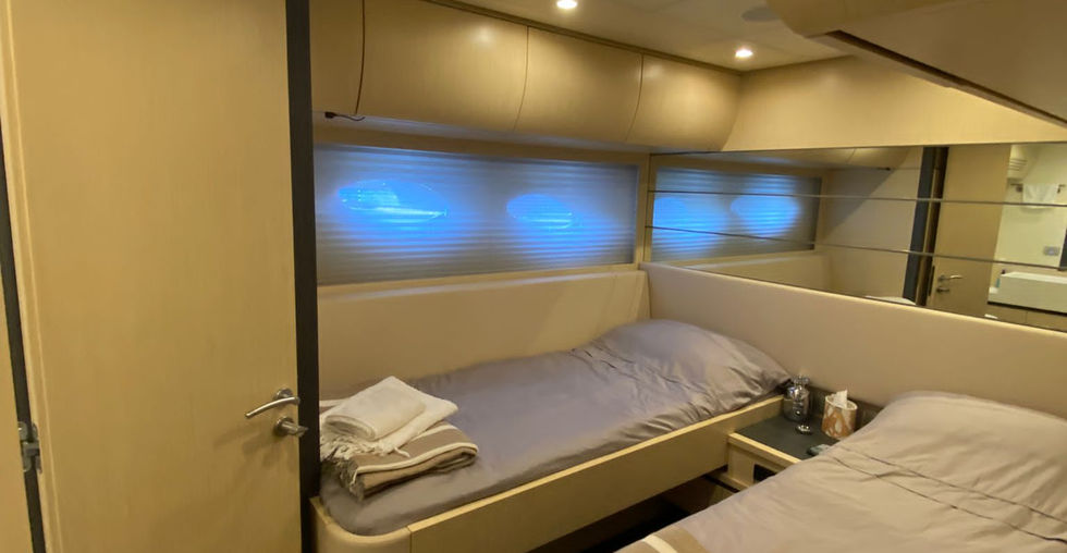 This powerful yacht has a cruising speed of 32 knots and fuel consumption of 900 L/h. Our Pershing comfortably accommodates and sleeps 8 guests in 4 cabins.
